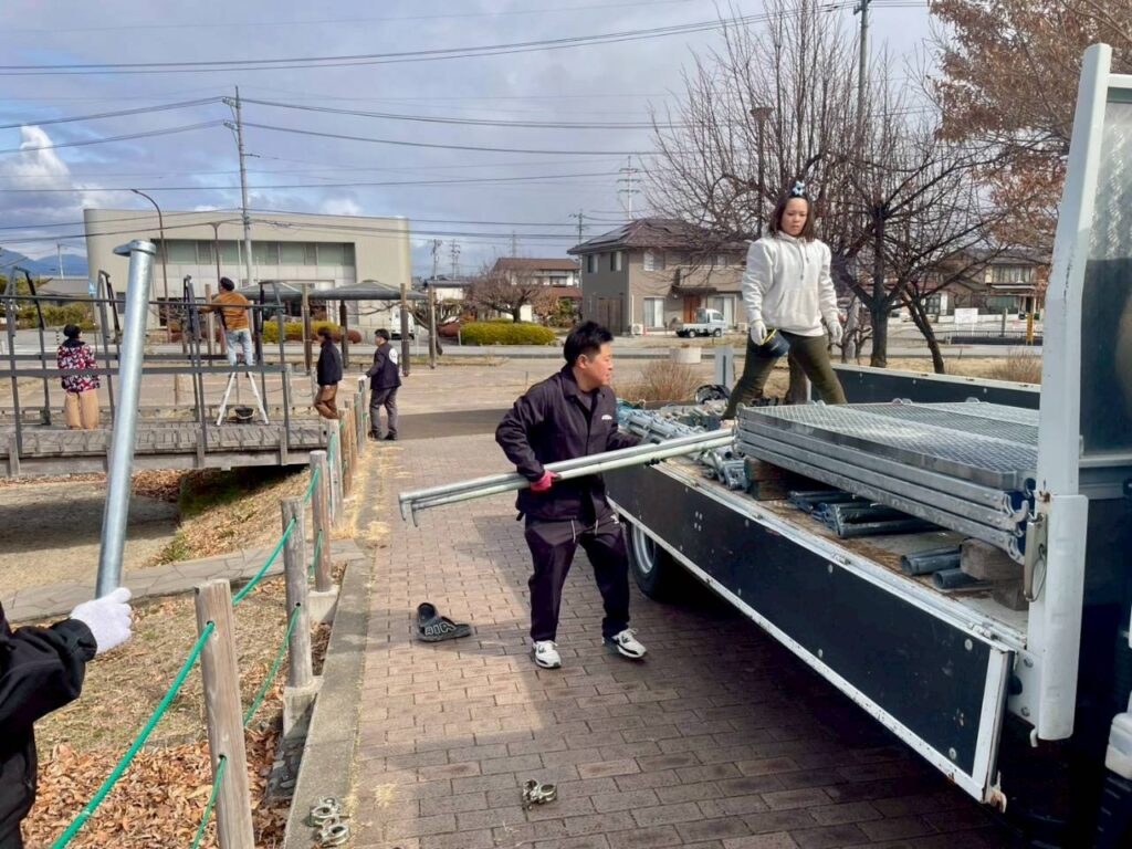 3月15日(火)、姉妹都市である長野県千曲市において、千曲商工会議所青年部が実施したイルミネーション撤去作業に、射水YEGから7名、会員家族6名が参加しました。